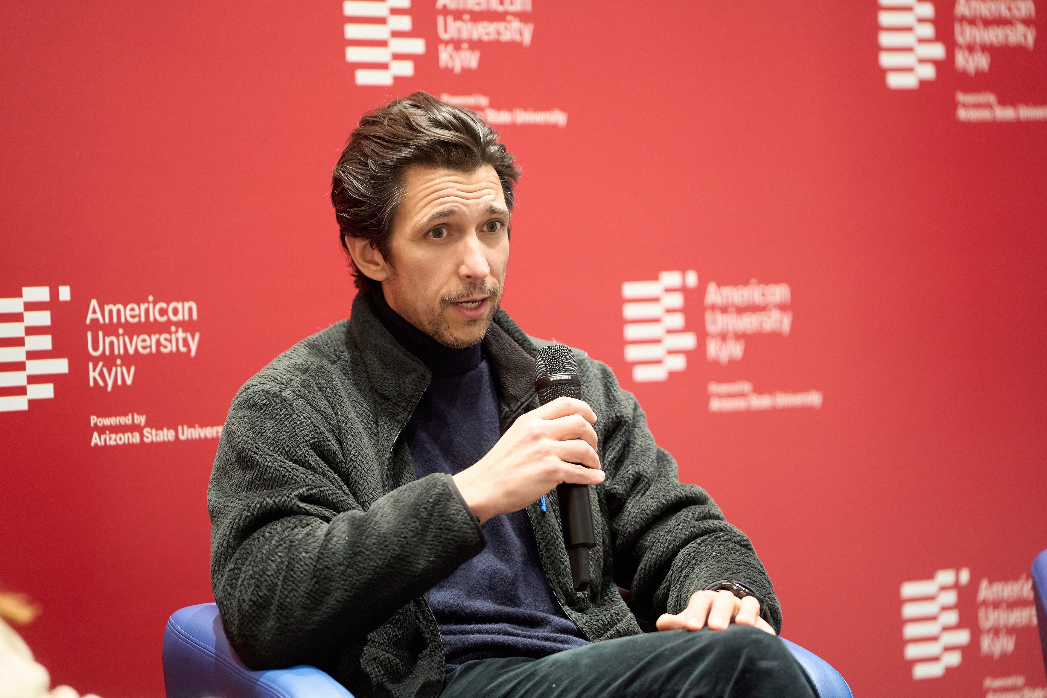 During an offline AUK Talks titled “Global economic challenges in turbulent times and the role of Logistics Plus in combating them,” which was moderated by AUK Vice President Oleksii Shershnov and Oleksandra Yusupova, an AUK student, Manager of Government Relations, Logistics Plus Inc., Derek Berlin shared his insights on global economic disruptions, the role of logistics and supply chains in times of uncertainty, and his international experience, including work in China. He also addressed intercultural leadership and cross-border cooperation in complex geopolitical situations.