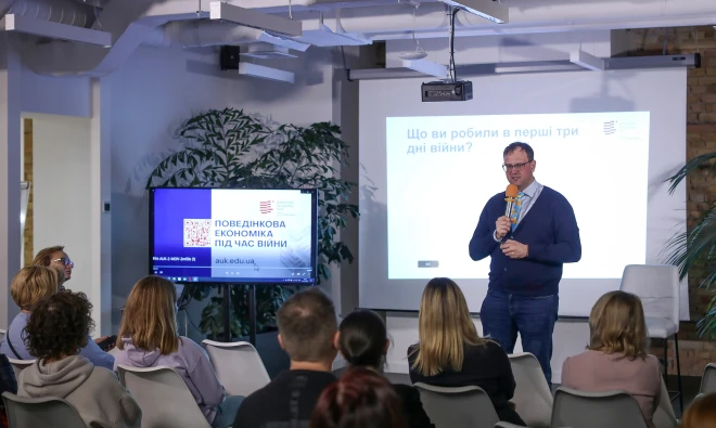 АЮK провів відкриту лекцію "Поведінкові патерни під час війни" з Володимиром Вахітовим, директором Інституту поведінкових досліджень