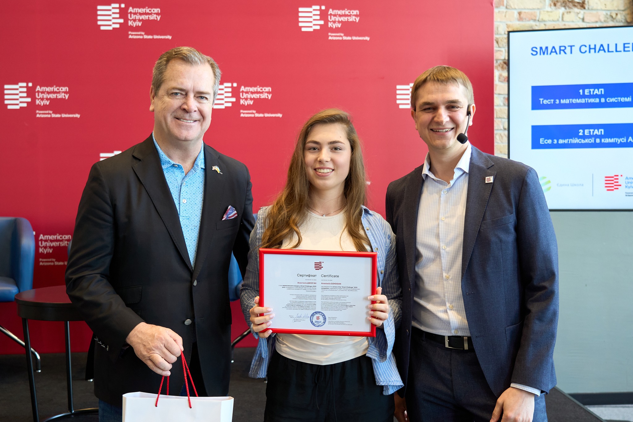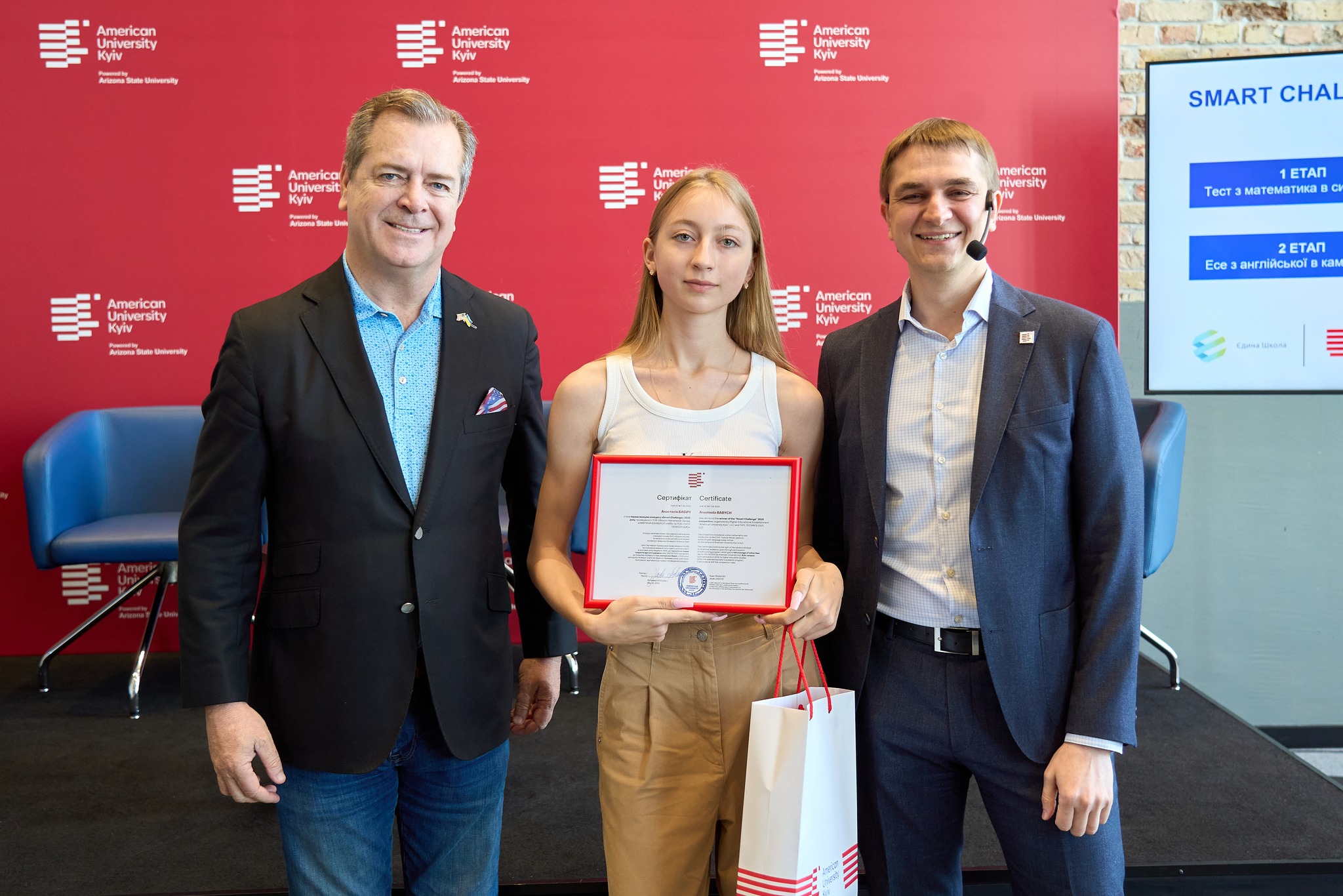 В American University Kyiv відбулася урочиста церемонія вручення сертифікатів переможцям Smart Challenge 2025 — конкурсу, що відкриває шлях до якісної освіти світового рівня для найталановитішої молоді України.