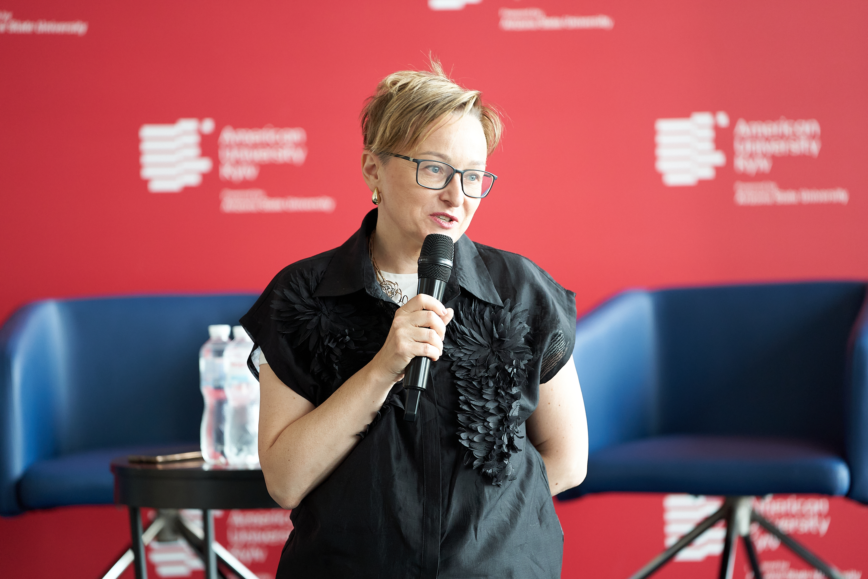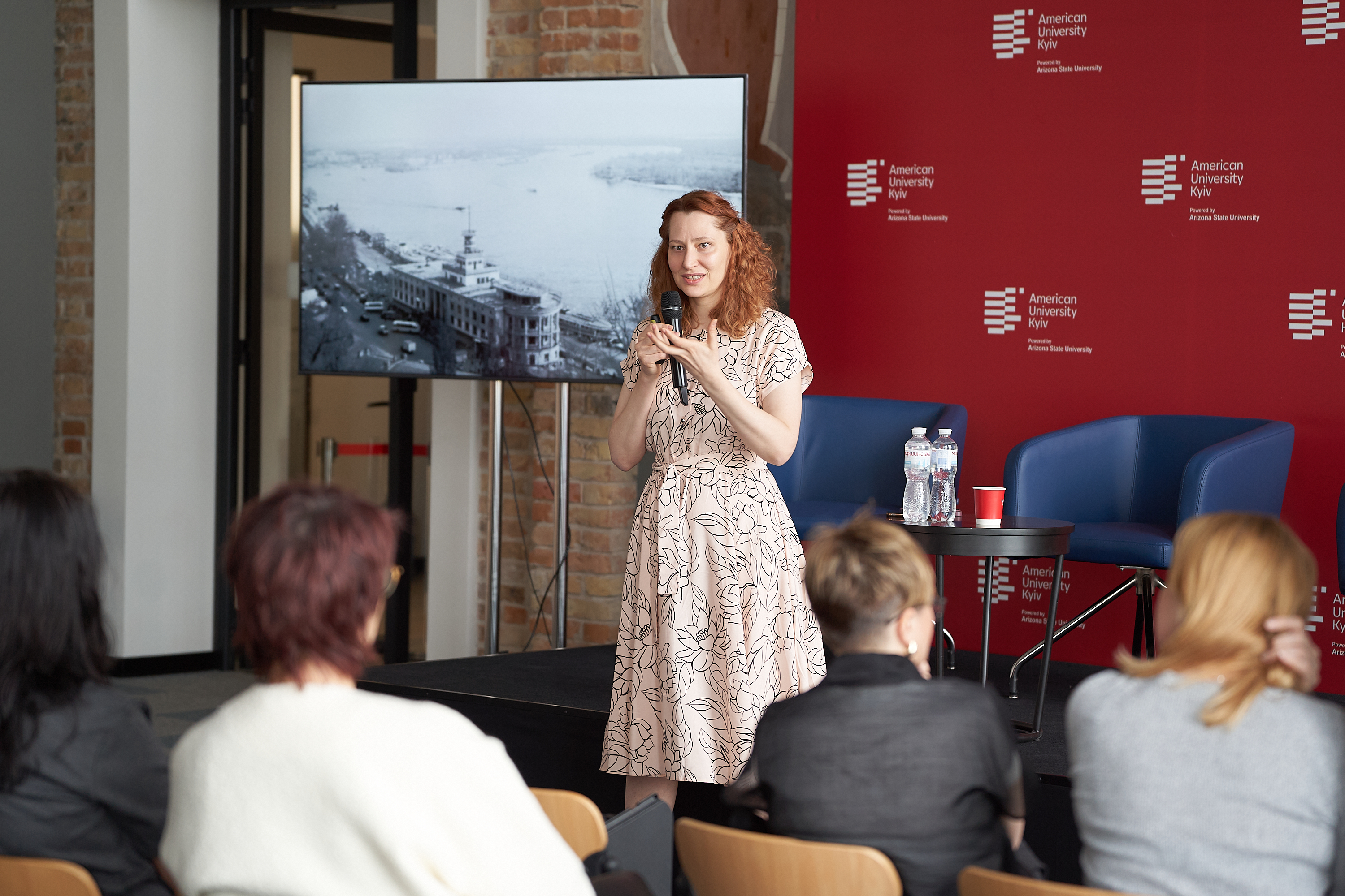 Модерувала подію Оксана Рудюк, PR-директорка АЮК, яка провела теплу й професійну зустріч, а також екскурсію кампусом університету, зануривши гостей в історію будівлі та ідею її трансформації в освітній центр.
